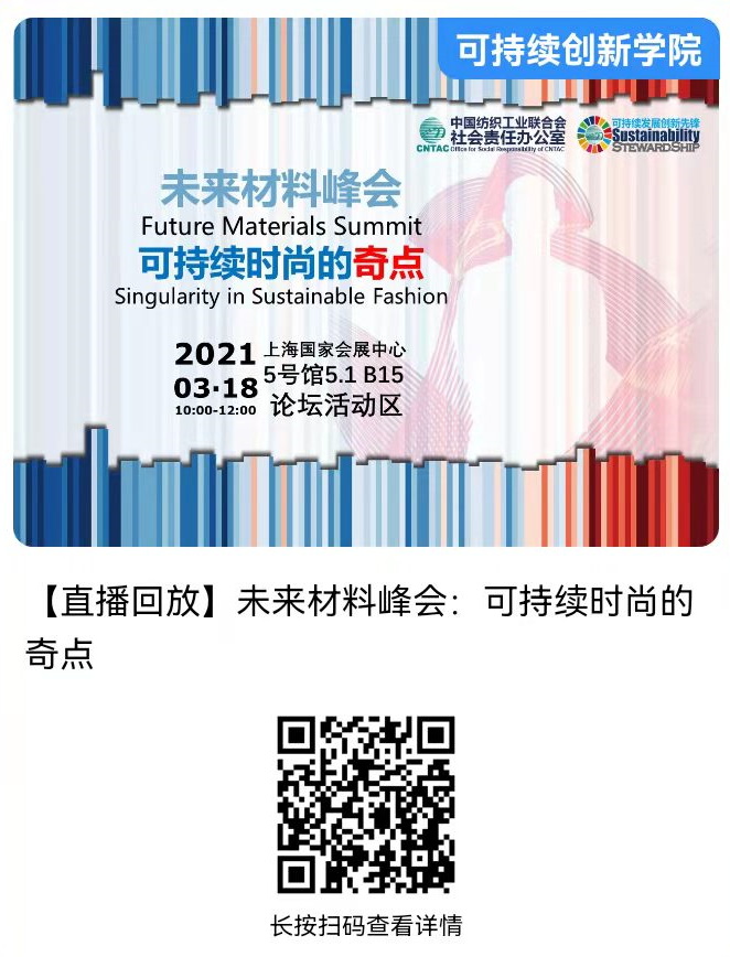 受邀参加“可持续未来材料峰会”,和与会嘉宾及消费端企业共同讨论纺织行业可持续材料的发展趋势,以及材料在未来与消费市场之间的关系。