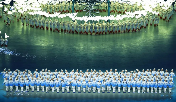 冬奥会主题曲舞蹈“放飞和平鸽”里的155位来自爱乐团主唱儿童的服装由设计师丁洁倾情设计。当孩子们的歌声在鸟巢上空的悠扬回响,身着青花瓷白和青两色组成的服装踏雪而来。设计师丁洁将服装图案融入中国过年“中国结”等吉祥元素,意象演变出千变万化雪花盛宴,当孩子们欢乐起舞时,那些层层叠叠解构形态的图案犹如三维画面梦幻呈现。舞蹈一静一动、栩栩如生的展现了2022年小朋友们对世界和平、祖国繁荣昌盛的美好愿景。