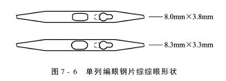 钢片综的长度与经纱开口的要求有关,开口大的用长综丝,开口小的用短综丝,其长短可按