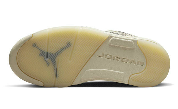 这款 Air Jordan 5 以“Expression”命名,同时鞋面以绒面革搭配黑灰色抽象涂鸦覆盖,亮银色勾边鲨鱼齿中底、奶白色半透侧网和外底等细节更是突出了 Vibe 风高级感。