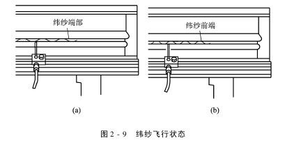 理想的纬纱飞行姿势如图2-9(a),大的“波形”纬纱在筘槽中心偏上方飞行的状态是理想的。
