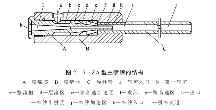 主喷嘴是气流引纬的关键零件,它的性能直接影响着引纬效果。喷气织机上,引纬工作主要是由主喷嘴、辅喷嘴及异形筘共同完成的。