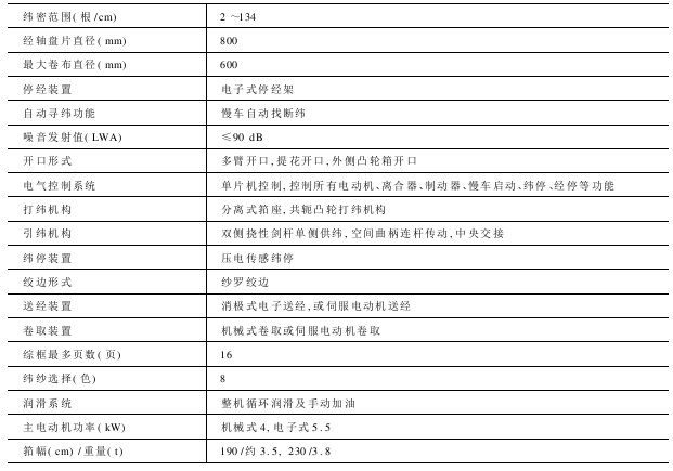 控制与检测 采用单片机控制系统对整机各个部分的动作进行监控,触摸式键盘输入各种功能、数据,可对慢车找纬装置、电子多臂、电子选色、电子送经、电子卷取、纬停、经停等装置进行控制和检测。