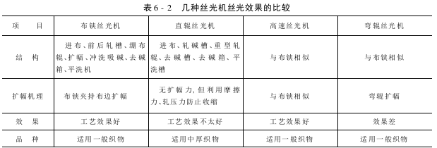 此外,还有高速直辊丝完机及布铗—直辊联合丝完机,这里不再介绍。常用的几种丝完机丝完效果的比较见表6-2。