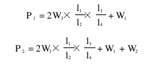 由以上两式可知,如果杠杆的l1 、l 2 、l3 、l 4 已经确定,则P1 、P2 的大小主要取决于W3 的大小。在新设计轧车时,则应当考虑l 1 、l2 、l3 、l 4 的合理长度。