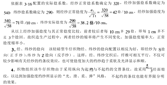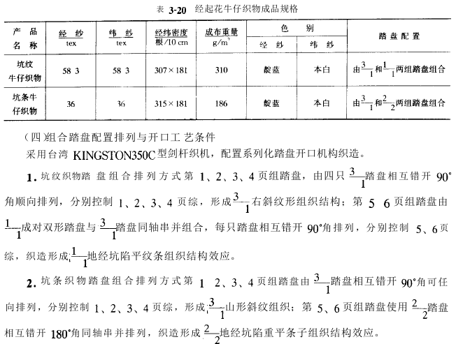 该绉条牛仔织物为轻磅型,规格见表3-15。