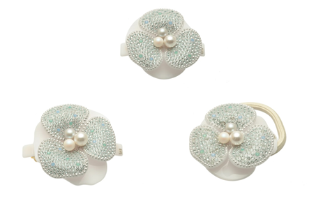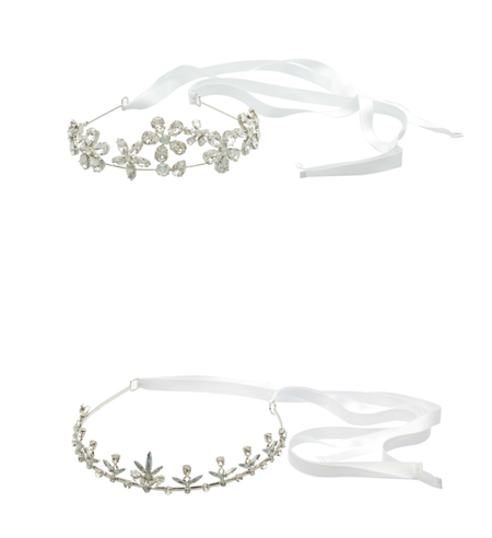 想必每个女孩都想拥有一个梦幻般的婚礼,梦想着王子来带着她走进幸福的城堡,采用主色调白色,象征纯洁,美好,以梅花镶嵌水晶钻,白色缎带犹如翩翩起舞的精灵,来衬托高贵优雅的新娘。花朵的头箍发饰会显得更加的柔美,会显得新娘格外的甜美娇柔,加上两条缎带设计,纯洁令人窒息,唯美的叫人难忘。橄榄枝叶整齐排列,水晶钻镶嵌其中,白色绸缎加以固定,无不彰显其高贵优雅的特质。