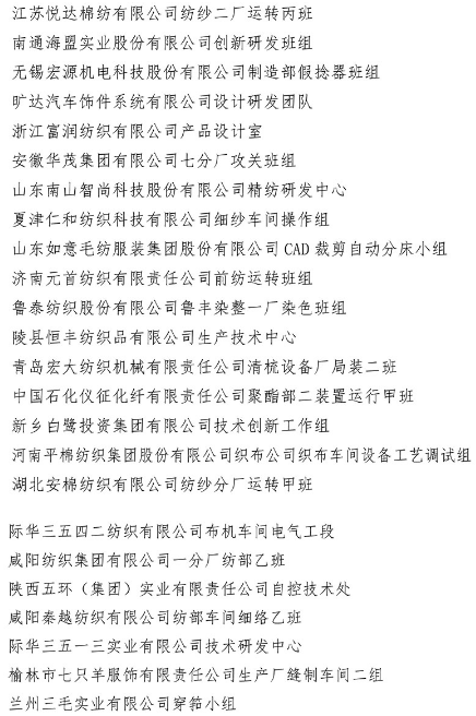 班组建设是纺织行业和纺织企业的一项基础工作,从新中国成立初期的郝建秀小组、赵梦桃小组,到改革开放时期邓建军科研组,纺织行业涌现出了一大批在行业乃至全国工业企业叫得响、立得住的先进班组,一批纺织班组被人力资源社会保障部、中华全国总工会等机构授予全国纺织工业先进集体、全国工人先锋号等荣誉称号。特别是党的十八大以来,中国纺织工业联合会高度重视培育与新时代纺织工业高质量发展相适应的知识型、技能型、创新型职工队伍,纺织班组建设工作得到了进一步加强和发展。