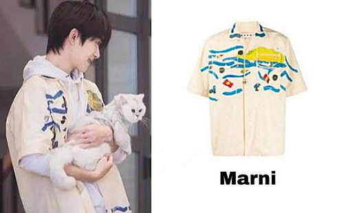 易烊千玺身着 Marni 米色印花衬衫叠穿白色连帽卫衣,搭配 Loewe 蓝色牛仔裤,脚踩 Off-white 黑色运动鞋,进得了厨房,撸得了猫,温柔可爱又居家的大佬谁能不爱呢?