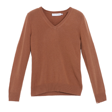 V领的羊绒衫的版型类似我们常说的蝙蝠袖的款式,无论是搭配短裙、纱裙还是牛仔裤都可以,如果不喜欢蕾丝系列还可以在里面搭一件白衬衫也是很好看的。