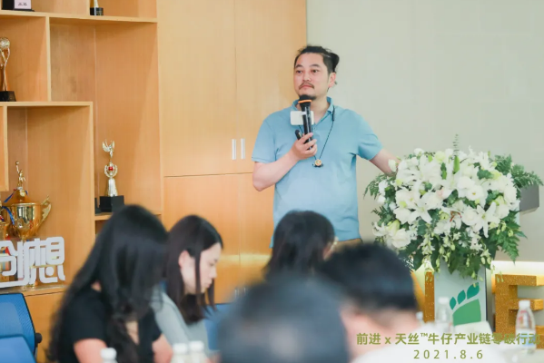 9:00,主办单位之一广东前进牛仔布有限公司总经理王宗文与兰精集团中国区纺织事业部高级商务总监戴富强分别就目前的情况进行了企业介绍,强调了零碳行动的重要性,拉紧了牛仔产业链中各家企业实现零碳行动的共同纽带。