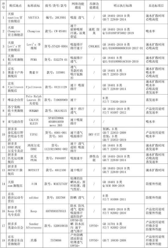 防晒帽、遮阳帽、冰袖……这些服装真能防晒速干吗?近期北京市消费者协会对部分速干类服装、防晒类服装及帽子、防晒类冰袖等功能性纺织产品开展比较试验发现,80件样品中27件存在未达到相关标准要求,涉及Adidas、Champion、李维斯、PUMA、拉夫劳伦、CALVIN KLEIN等品牌。