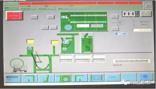1.7 开动机器前半部分,待导布过了上针保护入口后打开上针保护入口按钮至“1”,待导布出烘箱到达出布超喂辊时停机,把导布与出布部分的导带连接好。点击出布机构总控制按钮至绿色,打开出布部分各马达至“1”(除冷却筒张力马达开关以外)重新启动机器把导布引入到出布架后停机。打开冷却筒张力马达开关至“1”。