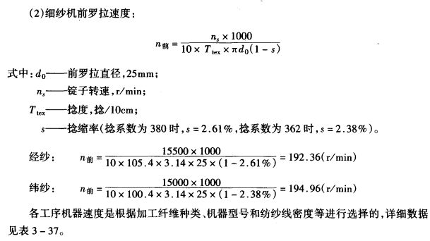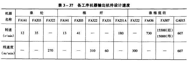 1.各工序半制品线密度的选择 根据原料的种类、性能和细纱特数,选择的各工序半制品的线密度见表3—36。