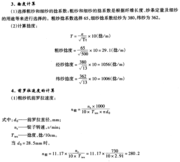 纺纱设备配备计算以J×J涤/棉纱为例