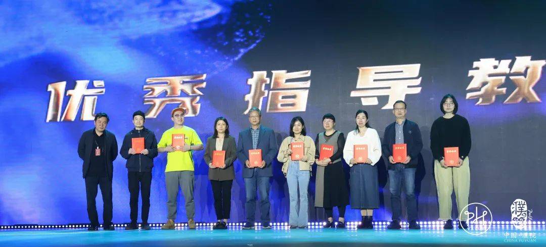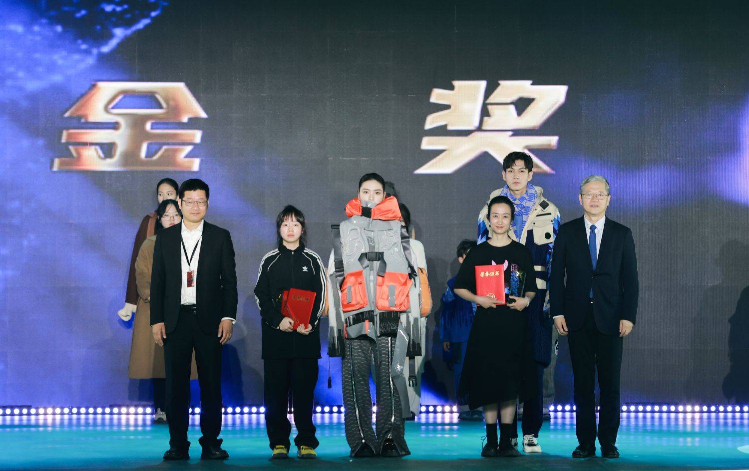 ↑ 东华大学服装与艺术设计学院教授、博士生导师刘晓刚为获得优秀指导教师代表颁奖