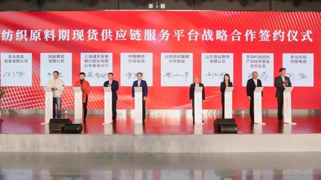 会上,青岛大学、青岛日报社、山东工艺美术学院产教融合青岛基地、青岛市工艺美术协会、青岛市流行色协会、青岛市纺织服装行业协会、青岛城市学院、青岛中纺亿联时尚产业投资集团、纺织谷发展有限公司等9家机构,就在纺织谷共同组建青岛国际时尚创意产业联盟签订战略合作协议。