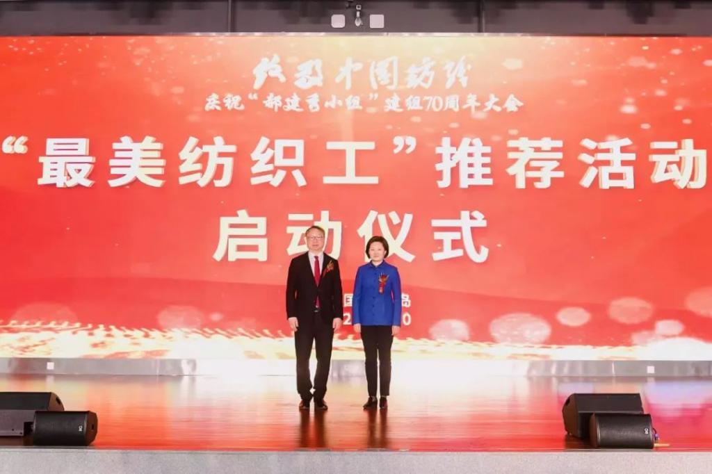 国际纺织制造商联合会主席、中国纺织工业联合会会长孙瑞哲和中国财贸轻纺烟草工会主席王倩共同启动“美纺织工”推荐活动