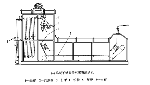 近年来,J形箱式、履带式等连续练漂机,又趋向与导布辊相结合的结构,以提高汽蒸加热的效率。