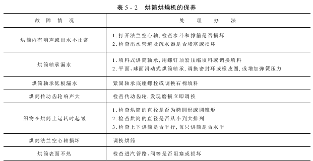 烘筒烘燥机的故障处理和保养分别见表5-1和表5-2。