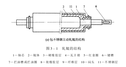 (4)由于橡胶具有独特的弹性,且具有适当的硬度、强度和一定的耐腐蚀性,故除部分硬轧辊采用金属辊外,其余硬轧辊和所有软轧辊都采用硬橡胶层及软橡胶层包面。橡胶硬度(邵尔A型)常用邵氏70、85、100等,一般主动辊比被动辊高。