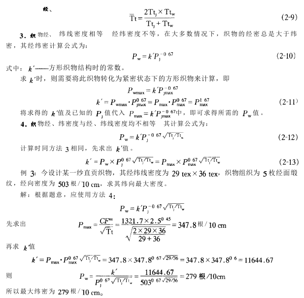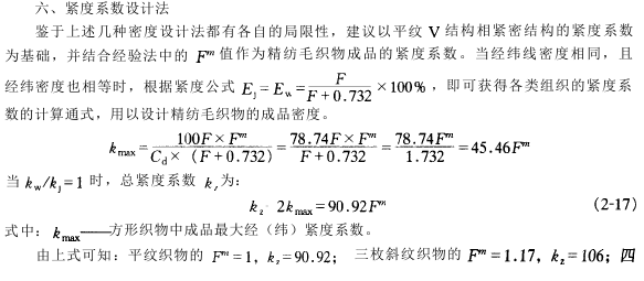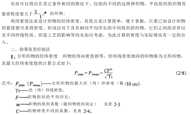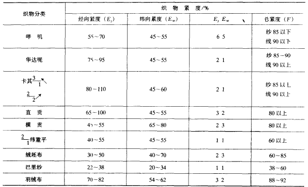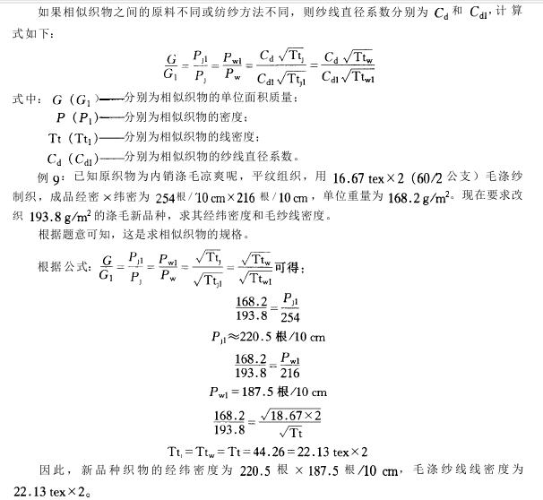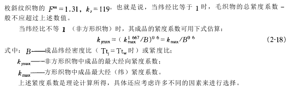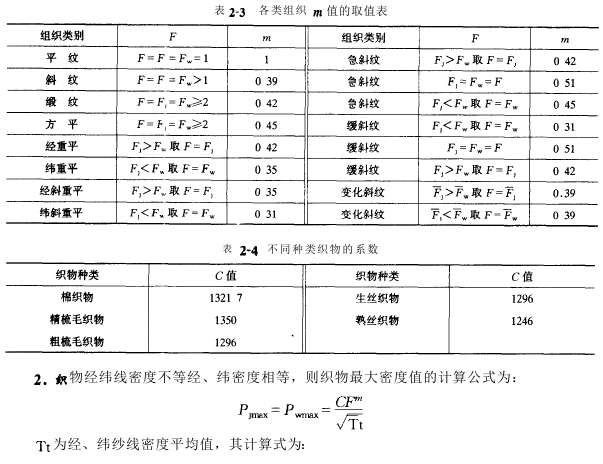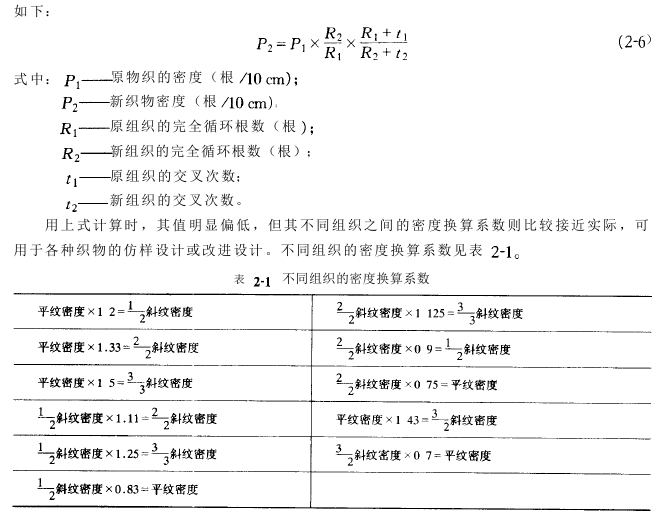 根据该理论可以获得各种不同组织的织物大密度。各种不同组织之间的密度换算关系。