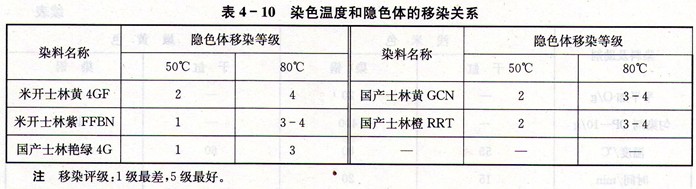 ③由于染色温度提高促进染料隐色体的移染性增大,匀染效果较好。染色温度和隐色体的移染关系见表4-10。