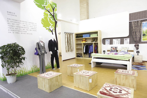 2013中国国际纺织纺纱线(春季)展览会上,再生和循环经济体验馆让观众亲身体验了一把低碳生活.