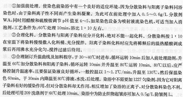 答 解决涤纶与阳离子改性涤纶同浴染色产生色点的问题可归纳为以下几个方面。