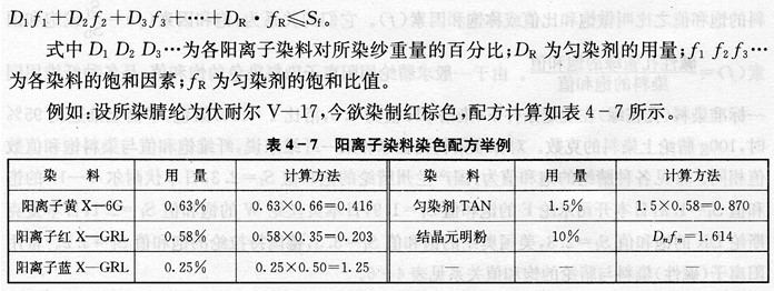 表4-8阳离子染料染色配方的调整及计算