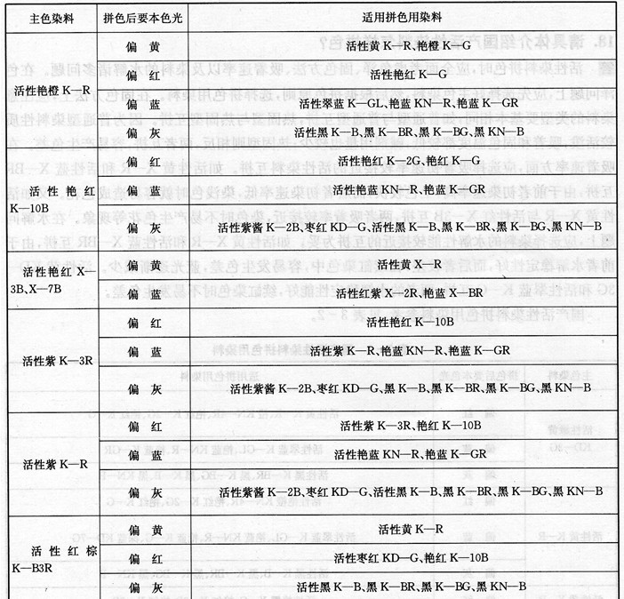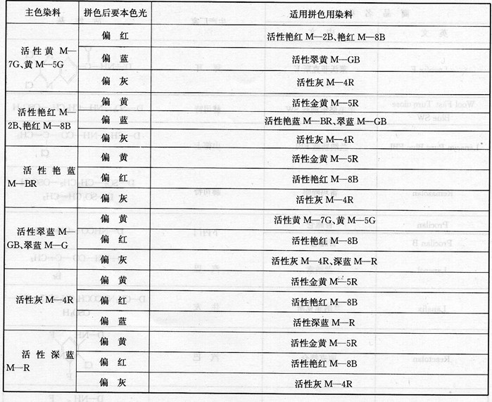 答 活性染料拼色时,应全面考虑色泽、固色方法、吸着速率以及染料的水解诸多问题。在色泽问题上,应先选择好主色染料,然后根据拼色原则,选择拼色用染料。在固色方法上,应注意染料的类型要基本相同,如普通型与普通型互拼,热固型与热固型互拼。因为普通型染料性质较活泼,吸着和固色温度都较低,碱剂用量也较少;热固型则相反,两者互拼,容易产生色差。在吸着速率方面,应选择吸着初速率较接近的活性染料互拼。如活性黄X一R和活性蓝)(-BR 互拼,由于前者初染速率高,上色较快,而后者初染速率低,染浅色时就容易造成色花。又如活性黄X-R与活性红X-38互拼,两者吸着率较接近,染色时不易产生色花等现象。在水解问题上,应选择染料的水解性能较接近的互拼为妥。如活性黄X-R和活性蓝x_一BR互拼,由于前者水解稳定性好,而后者较差,在续缸染色中,容易发生色差,蓝光逐渐减少。活性黄KD一3G和活性翠蓝K-G互拼,两者的水解稳定性能好,续缸染色时不易发生色差。