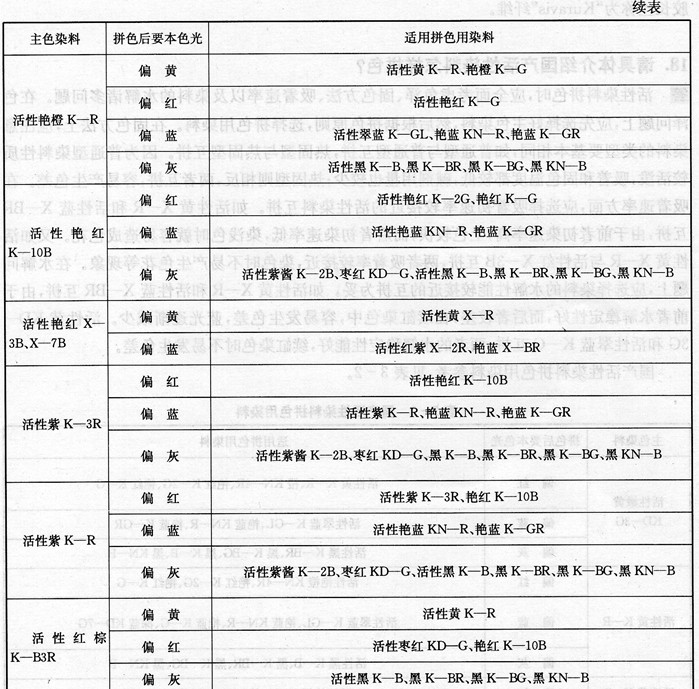 活性黄K—R、橙KN一4R、艳红K一2G、艳红K—G |