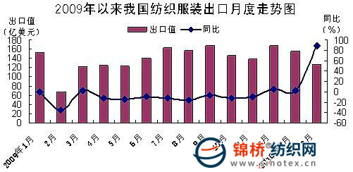 短期内我国纺织服装出口有望继续好转。2010年3月9日闭幕的华交会订单成交情况显示,本届华交会总成交金额较上届增长21.95%,其中纺织服装成交多,仅展会开幕当日,成交额同比增长就达15.71%。然而长期看来我国纺织服装出口仍然受到以下3方面因素影响: