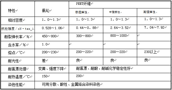 表1—2氨纶与PEET纤维的特性对比