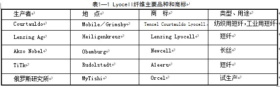 答 Lyocell、Tencel和Newcell三种纤维都属于再生纤维,是新一代无污染的绿色纤维。由于过去几十年中,在生产粘胶纤维时,使用CS2而造成废气、废水严重污染环境,因此,这种纤维的生产受到了严格的环保政策制约,促使世界各国致力于研究、开发新的纤维以减少环境污染。以NMMO(N一甲基吗啉氧化物)作溶剂生产出来的纤维素纤维,由于无污染,被称为绿色环保纤维。Lyocell、Tencel和Newcell纤维都是以NMM0作溶剂生产的纤维素纤维。l944年它被国际人造纤维和合成纤维局命名为Lyocell。其短纤维称为Tencel,而长丝则被称为New-cell。Lyocell自1993年起由英国考陶尔兹(Courtauldo)公司在美国生产,其商标为Tencel……目前世界上生产的Lyocell纤维主要品种和商标如表1-1所示。