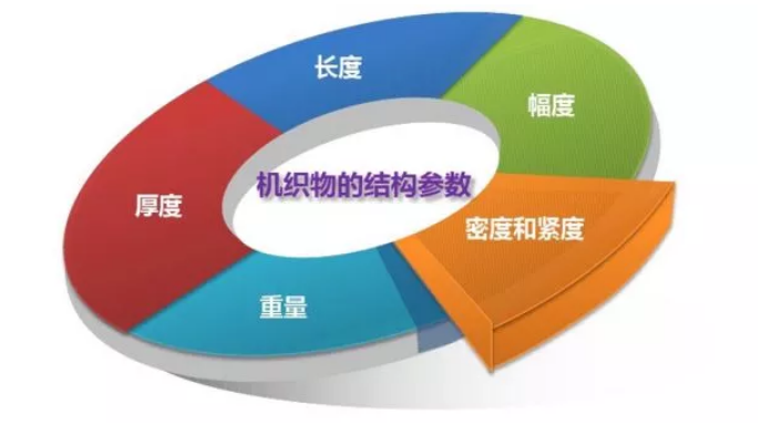 决定织物结构的有经纬纱线密度、经纬排列密度、织物组织三大要素。这三个要素不同,经纬纱在织物中的空间形态就不同。这三个要素决定着织物的紧密程度、织物厚度与织物重量,决定着织物中经纬纱的屈曲状态,也决定着织物的表面形态与花纹,从而决定着织物的性能与外观。