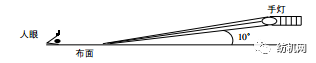 手灯灯光方向与布面成10°角,人眼对着灯光方向看布面,如图 1 所示。