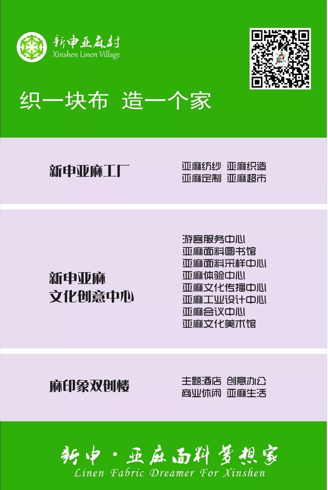 位于中国丝绸小镇-震泽的新申亚麻村,亚麻全产业链不仅有一线亚麻纺纱厂、织造厂,更延伸到文化创意、场景体验、创客空间、主题酒店、线下零售等等,可以说是一个亚麻生态系统,更直观、更丰富、更全面的亚麻面料体验就在这里。