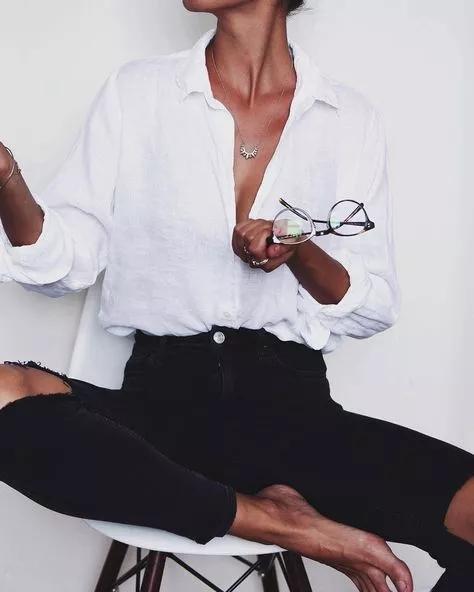 白色亚麻衬衫,不需要有太多装饰,搭配简单的一条牛仔裤,就可以拥有时尚博主的穿衣气质。