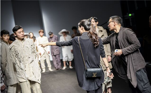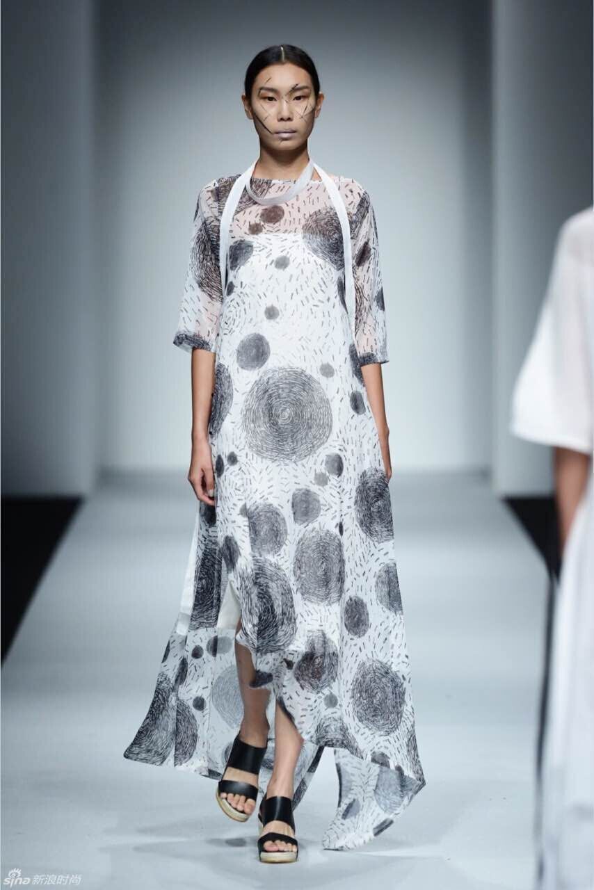 在本场秀中,设计师在面料的选择与使用方面近乎苛刻,对每张图稿的设计之初就开始对面料应用性能进行研究,并在样衣的制作过程中对亚麻面料进行大胆尝试。设计师在紧扣季节性特点的基础上将棉、纱、雪纺、皮革等材料大胆和亚麻相结合。色彩上采用主流的中性色调来贯穿整场秀,米色、卡其色使整体设计显得柔和、干净,咖啡色和黑色带来精美的组合。清新的亚麻色和灰色调的原创数码印花为天然粗犷的织物结构增添了时尚纹理,通过改良式的新中式服装和随意简洁的外套成为整场秀的亮点。在工艺处理上设计师利用扎染、吊染、套染等纯手工植物染色将色彩从亮色到暗色的过度呈现出不同层次的色调,让整个系列看起来统一多变而富有节奏和变化。在本季的发布秀中,简约利落的服饰外形成为设计师一贯坚持的服装廓型,在细节剪裁和制作上赋予了服装的多变性,大廓型搭配的外套,搭配修身活叶边袍服、翻折边九分裤装,让整体造型混搭的时尚感强烈。
