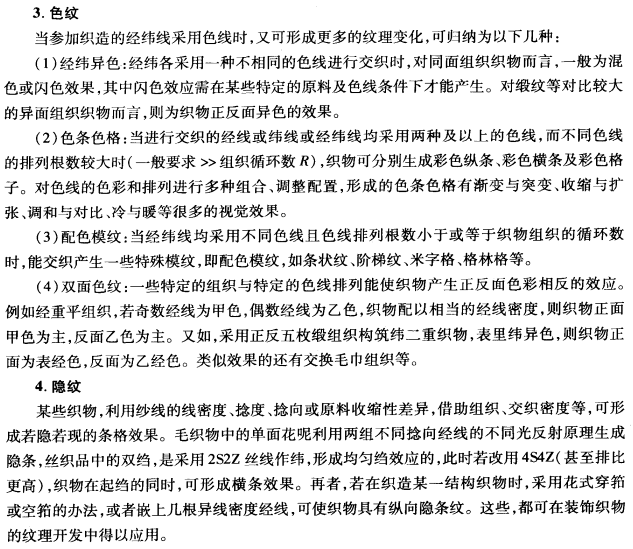 装饰织物在织造中,由于组织结构、交织紧密度、经纬线色彩因素的配量变化,可产生各种不同的外观纹理效果。