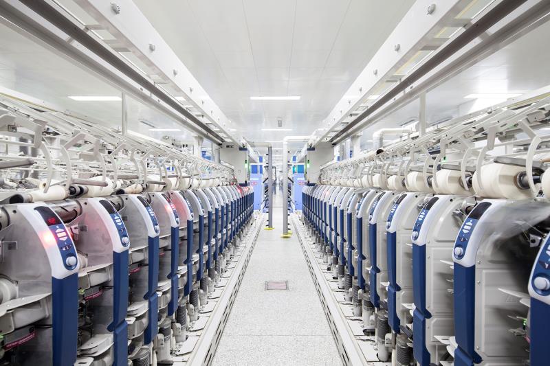 进入车间,罗列整齐的各色设备运转有序,却少有人走动,取而代之的是随处可见的“机器人”,它们正成为车间里的主角。如直观的包装环节。作为纺纱工业主要环节之一,包装原本是“苦活、累活”的代名词。但这个车间建站起长度为35公里的轨道,粗纱从一楼到二楼自动入库,整个流程无任何人工直接参和。