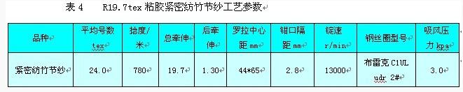 综合以上的分析,粘胶密切纺竹节纱,较优的工艺参数见表4: