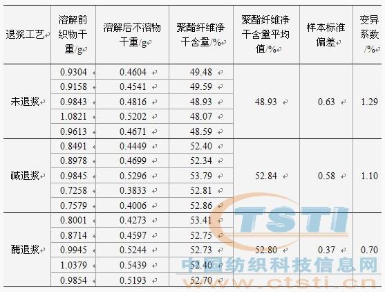 2.3不同退浆工艺对涤/棉含量分析结果的影响