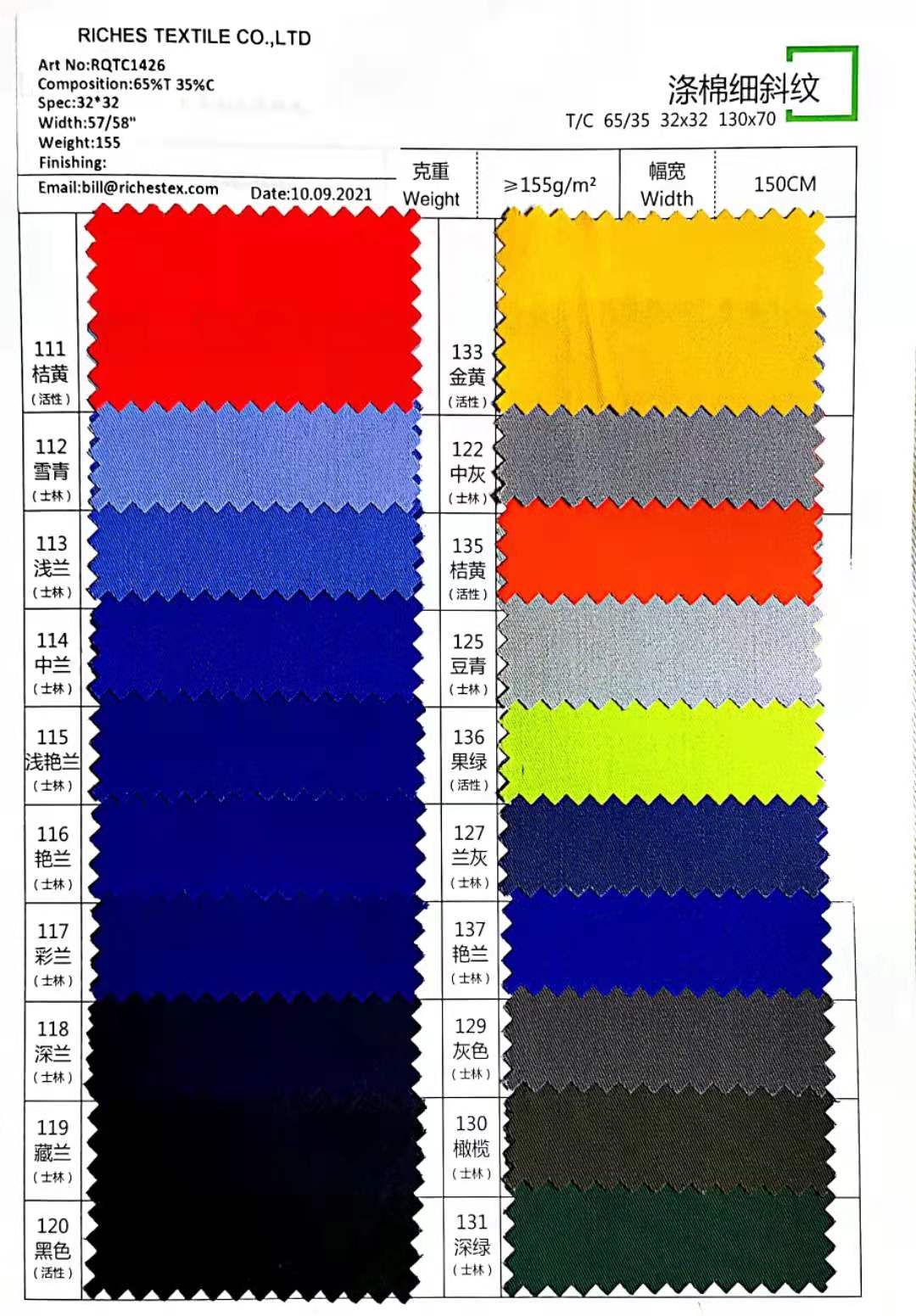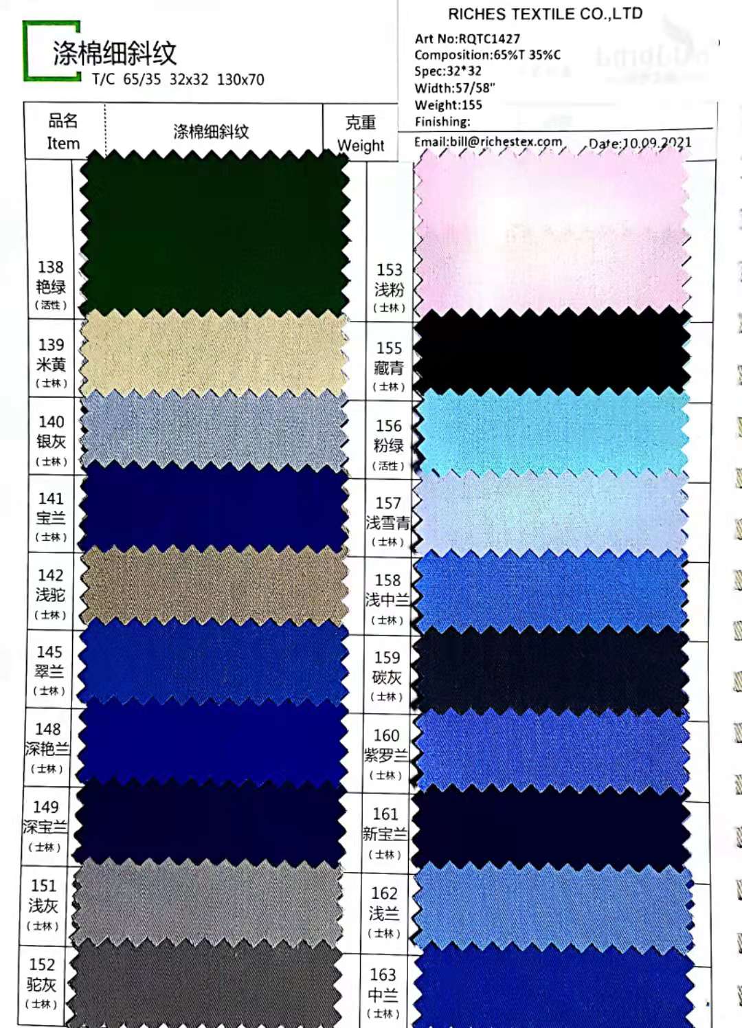 涤棉细斜纹65%T*35%C 130*70 155克面料